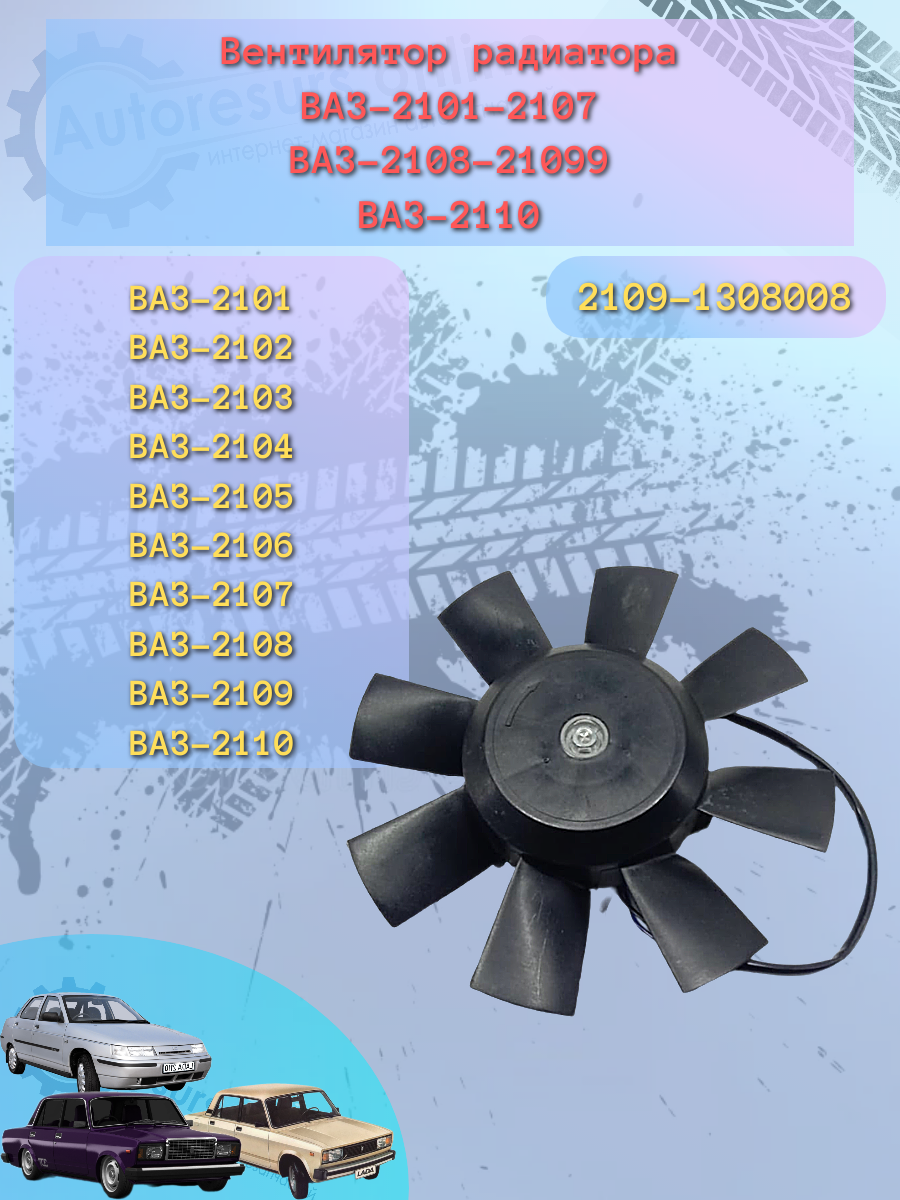 Вентилятор охлаждения радиатора с мотором ВАЗ 2101-2110 (8-ми) "Авто-Вираж"