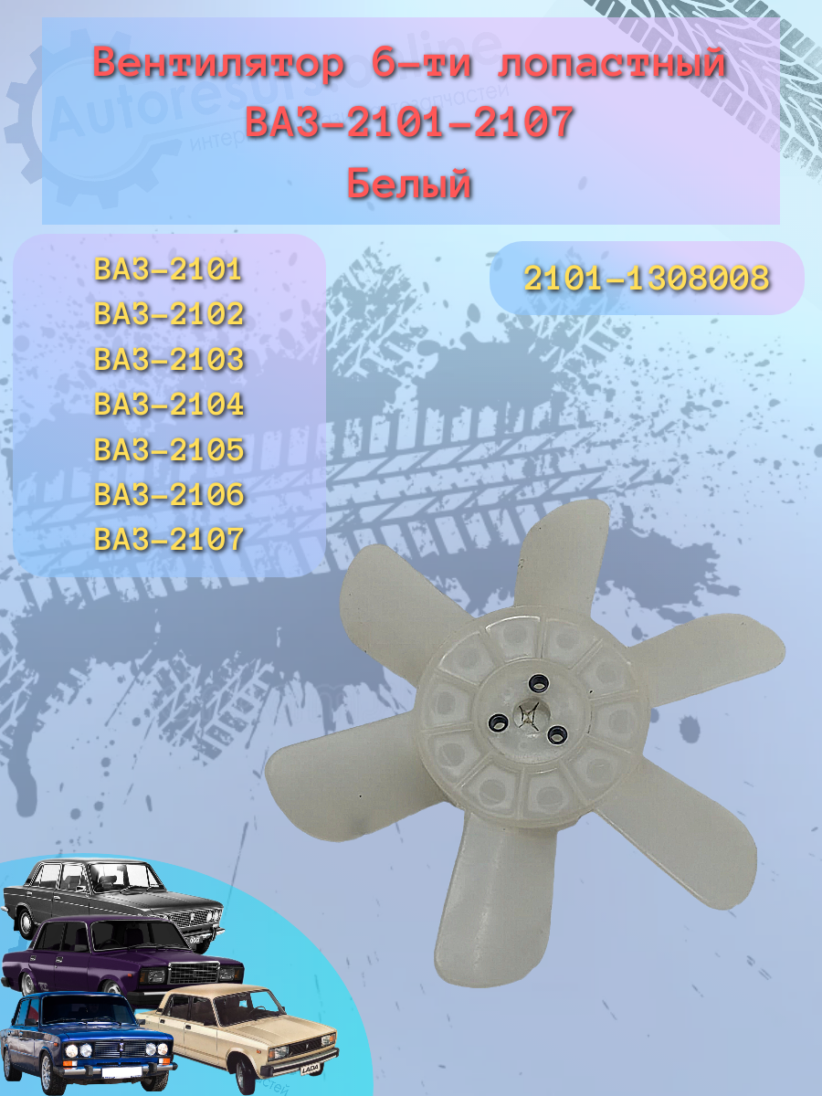 Крыльчатка вентилятора 6 лопастей ВАЗ 2101 белая
