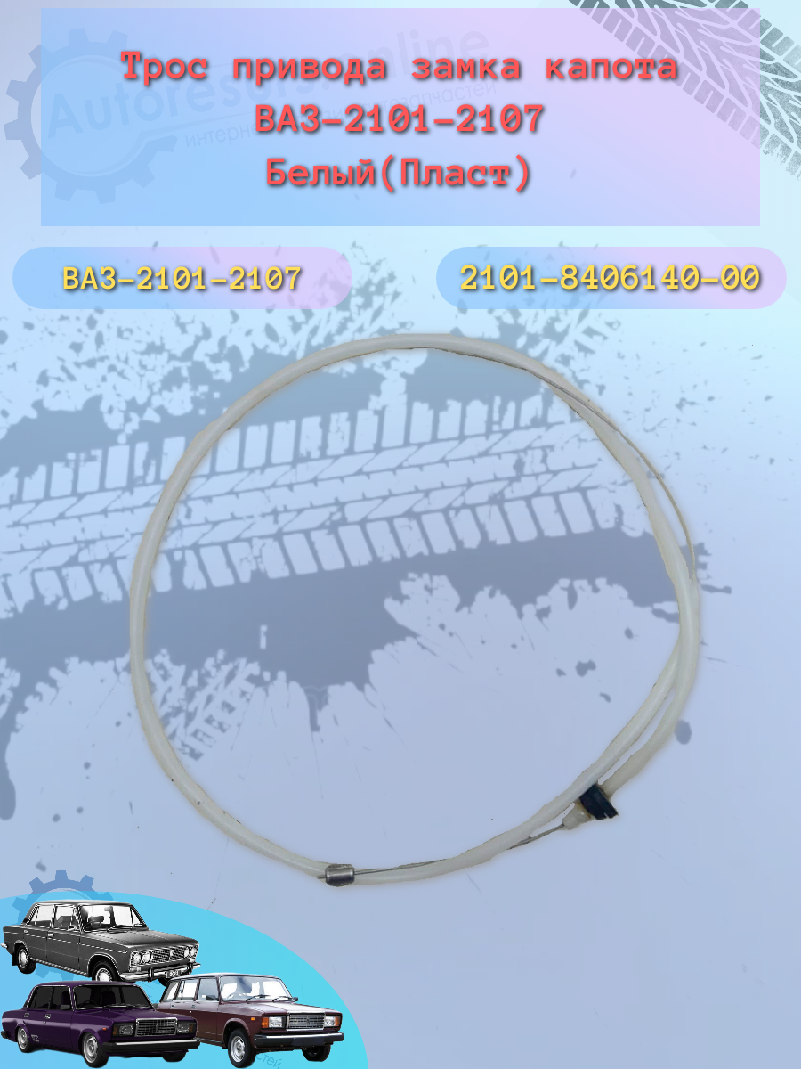 Трос капота "ДЗ" ВАЗ 2101-2107 пластик белый