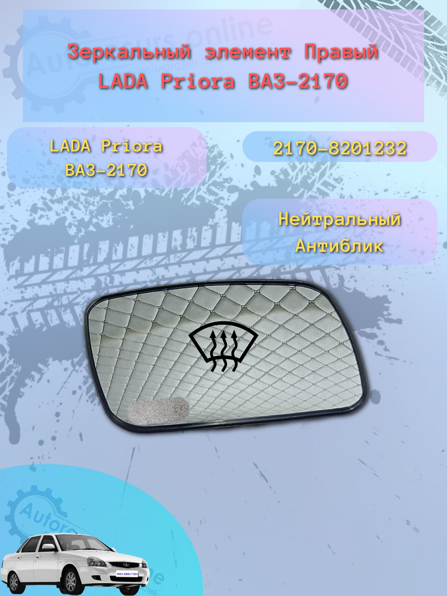 Зеркальный элемент "SOLINA" ВАЗ-2170 Н/О (белый) обогрев правый