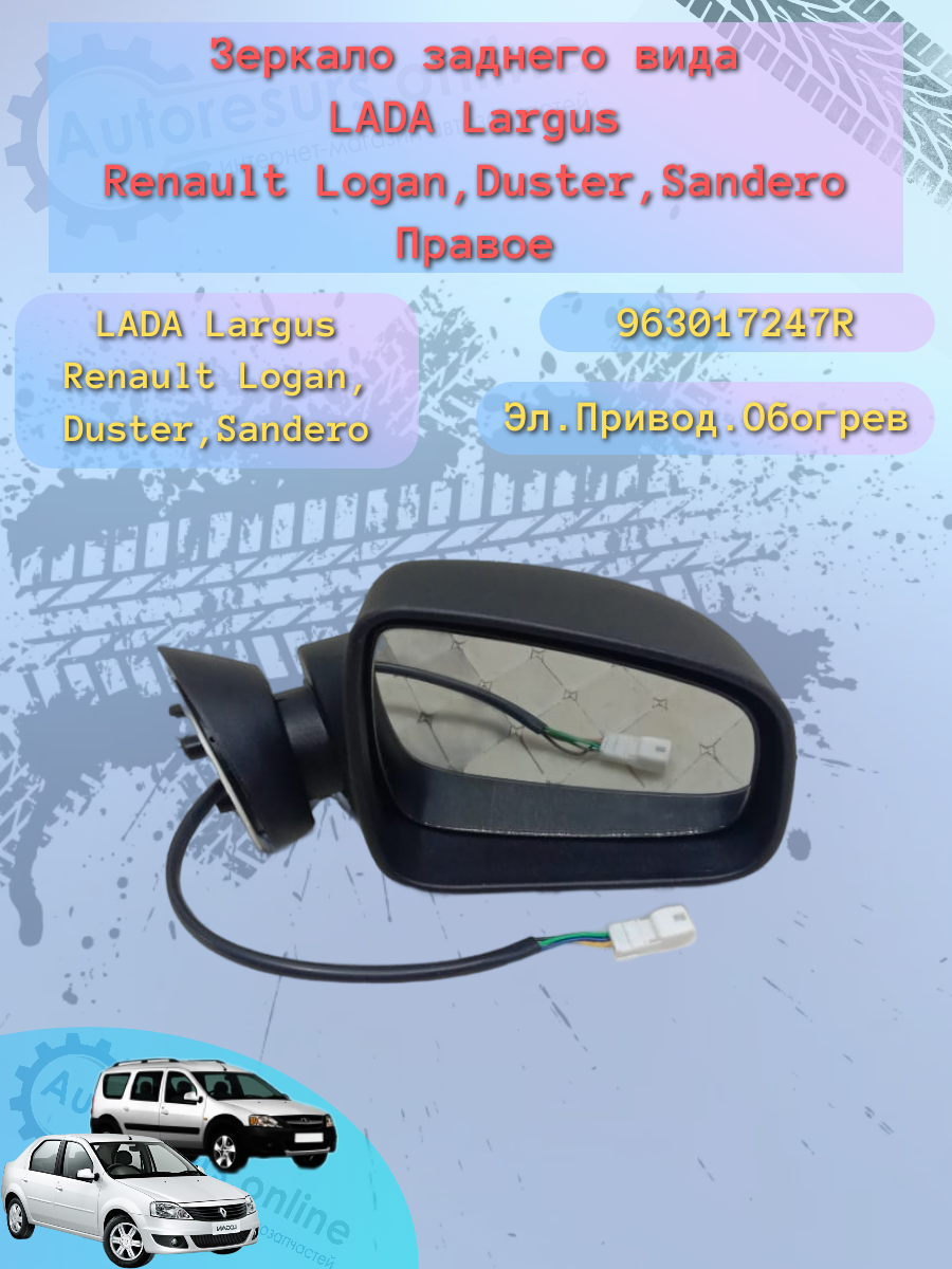 Зеркало боковое "ГрандРиАл" Рено Логан, Ларгус, Сандеро, Дастер электро правое